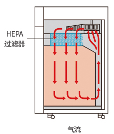 - 100级别的HEPA滤芯,可对0.3um颗粒进行99.97%的过滤。